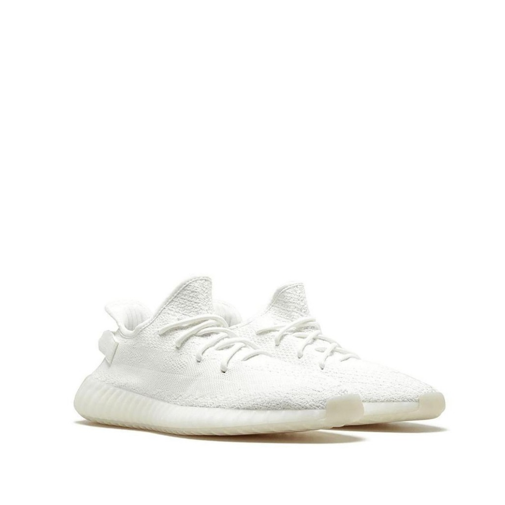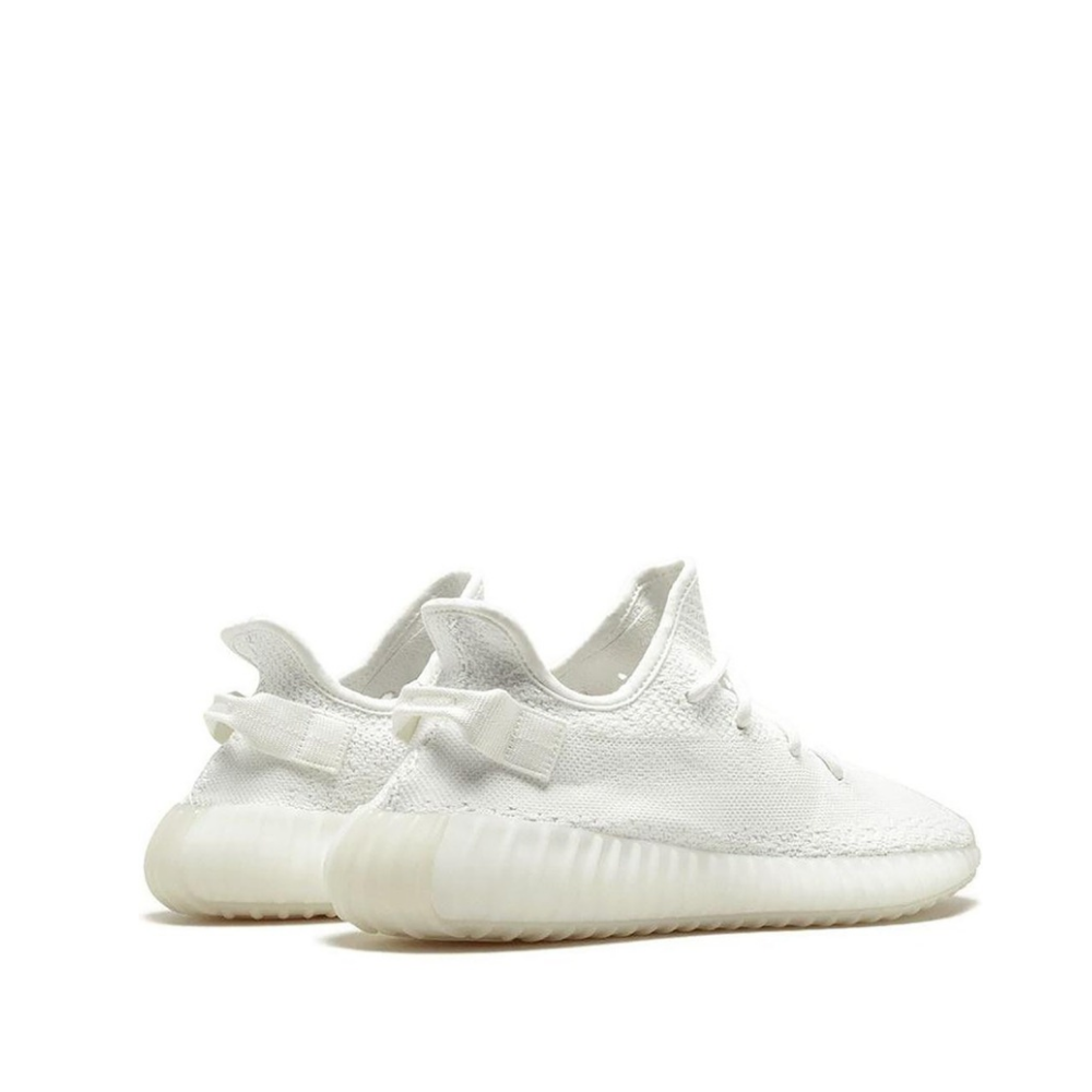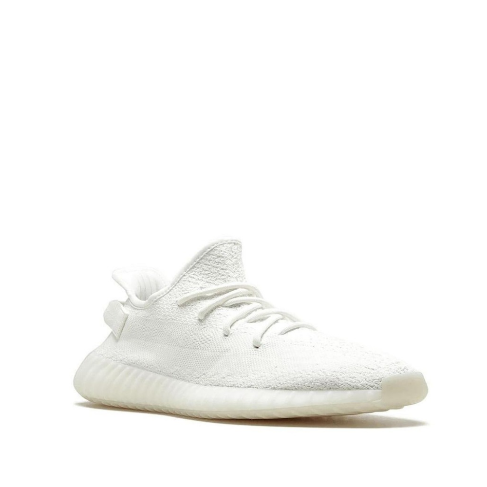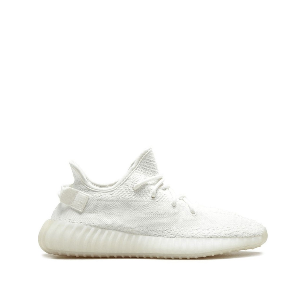 The adidas Yeezy Boost 350 V2 "Triple White" takes the popular Yeezy model in a monochromatic direction. The shoe features a white woven Primeknit upper. The “SPLY-350” messaging, which defined past Yeezy Boost 350 V2 releases, is also done in white so it is camouflaged within the upper. A cream midsole wraps around Boost cushioning to create a pristine version of the silhouette. The adidas Yeezy Boost 350 V2 "Triple White" first released in 2017, and made a comeback in 2018. The "Triple White" Yeezy is the most-produced colorway to date, and allowed Kanye West to take a step closer to fulfilling his promise that Yeezy sneakers would eventually be available to everyone that wanted a pair.
